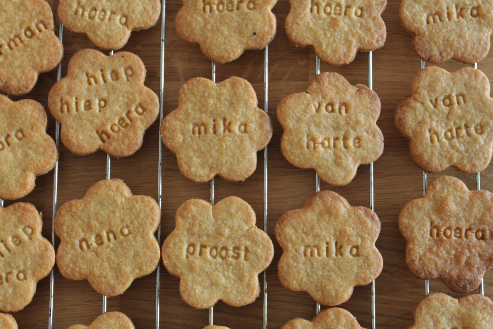 Voor €15,- inclusief kaart en verzendkosten vallen tien van deze persoonlijke koekjes in jouw (of iemand anders zijn) brievenbus.