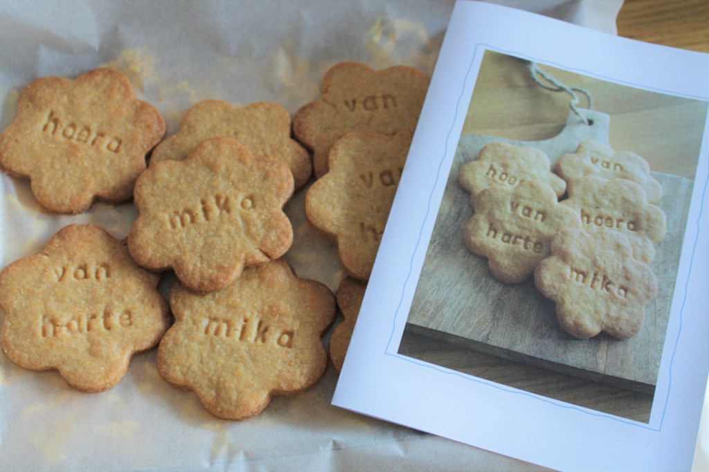 Op dit klassieke koekje kan ik voor jou een naam en/of woord stempelen. Een perfect cadeautje voor een lieve vriend(in), een bedankje of om iemand een hart onder de riem te steken. Bij de koekjes doe ik een kaart. Hier zet ik een foto van de koekjes en jouw persoonlijke bericht op. Zo heeft de ontvanger een aandenken aan jouw bijzondere cadeau.